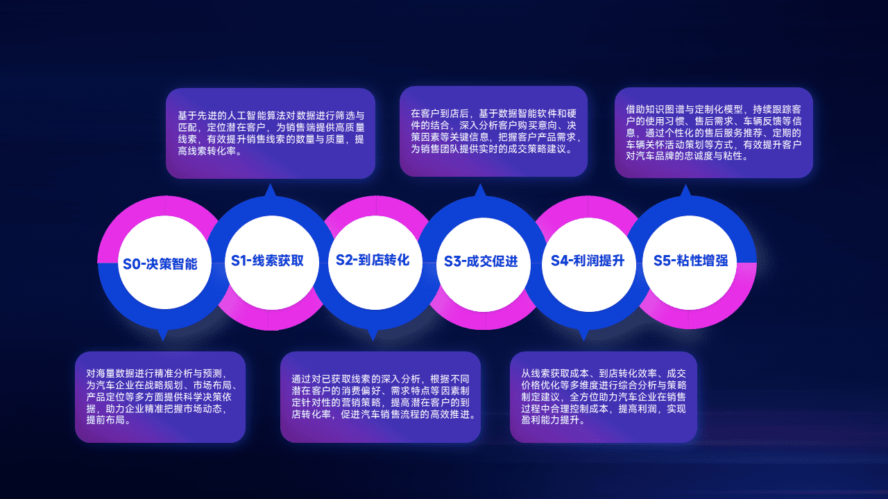 通过拓宽潜在客户来源、、、、优化线索分配并提高到店转化率,,,以增强销售效率。。。同时,,,利用线索数据不断优化分析模型,,,有效提升转化率,,扩大营销影响力。。。